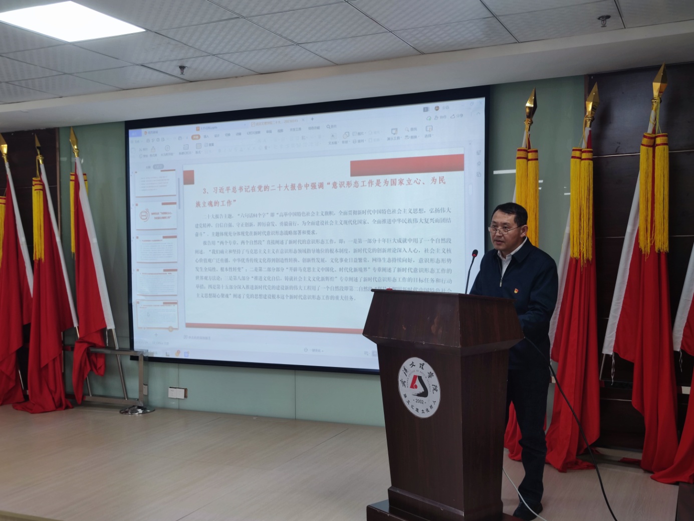 杨知勤书记指出,本次报告有高度、有深度,殷主任结合其工作中的鲜活实例为我们进行了理论阐述,让在座的老师们受益匪浅。他强调,意识形态工作事关国家政治安全和经济社会发展全局,公司要高度重视,聚焦重点,牢牢掌握意识形态工作话语权和主动权,持续加强理论武装,强化阵地管理,壮大主流思想舆论,激励广大师生踔厉奋发、勇毅前行、团结奋斗。